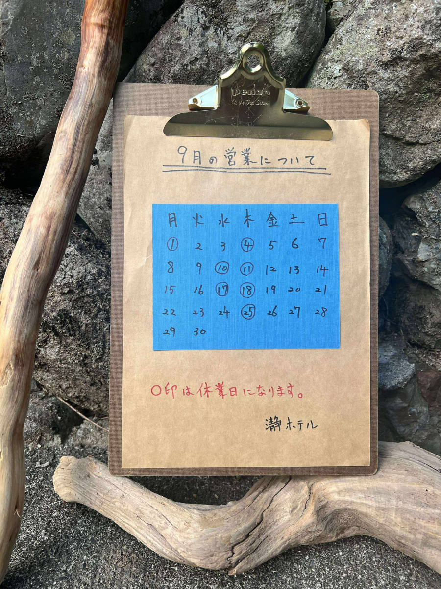 9月の営業予定になります。 ご確認の上 ご予約頂ければ幸いです。